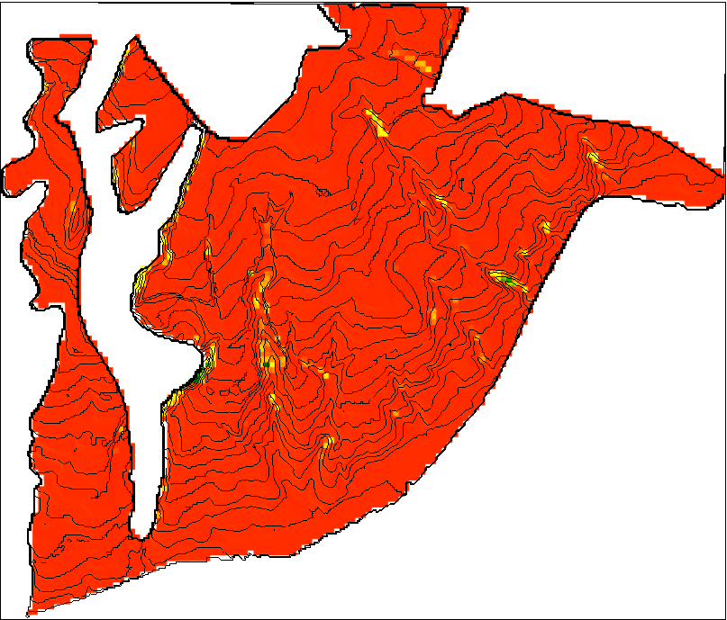 用户点击“坡度计算”,没有特殊情况东西间距和南北间距为10。点击“计算”,计算完成后查看坡度图示。