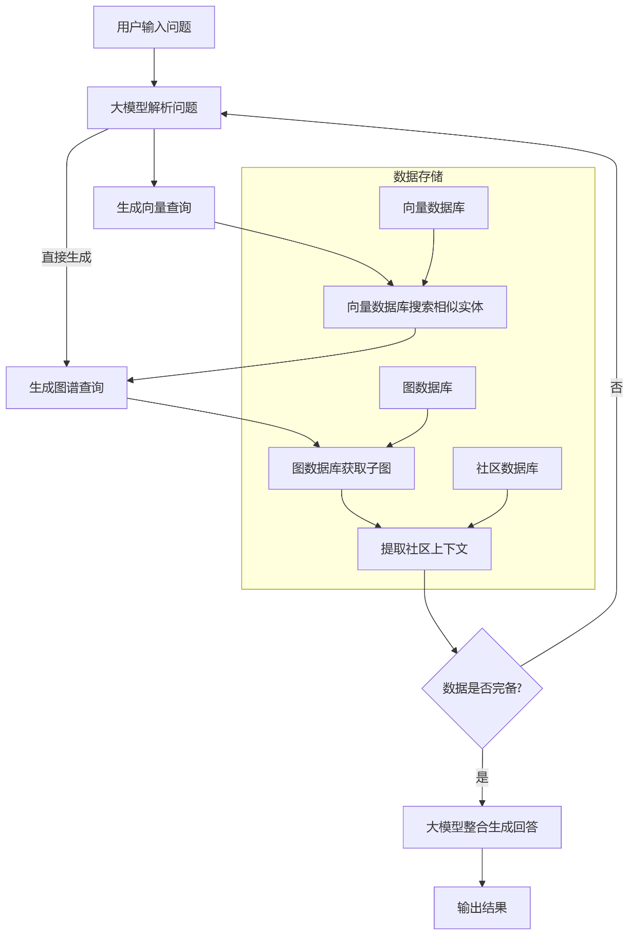 3. 智能检索:当用户提出问题时,系统会根据问题的语义,智能选择查询路径。它结合了向量检索和结构化图搜索两种方式,就像是在地图上同时使用GPS定位和路线规划一样,精准获取与问题相关的图谱内容。