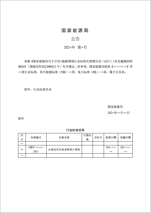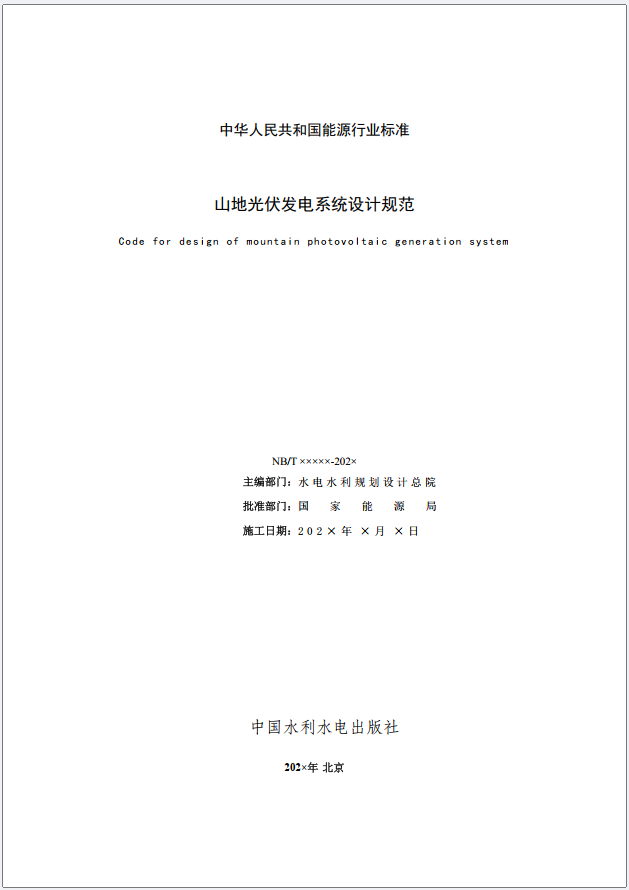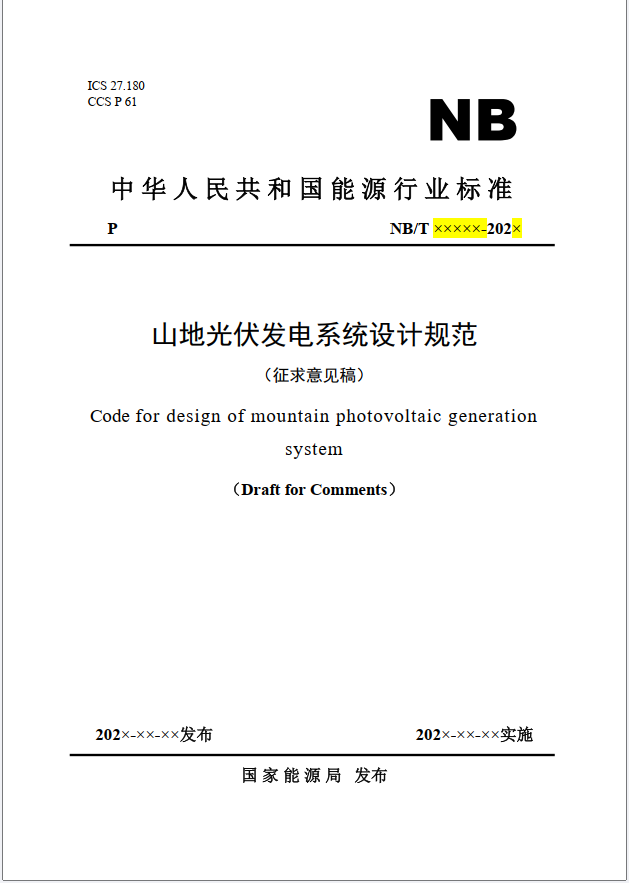 12月2日,水电水利规划设计总院发布《关于对能源行业标准《山地光伏发电系统设计规范》征求意见的通知》,公开征求意见。该规范适用于新建、改建、扩建的并网型山地光伏发电系统设计,由中国电建集团北京勘测设计研究院有限公司、中国电建集团贵阳勘测设计研究院有限公司、福建永福电力设计股份有限公司等单位编制,现能源行业标准《山地光伏发电系统设计规范》已完成征求意见稿,并向业内23家单位征求意见。
